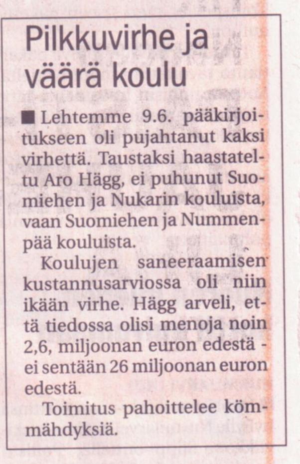 Paikallislehti hieman oikaisi edellisen numeron pääkirjoitusta. Hieman jäi vieläkin korjaamisen varaa…