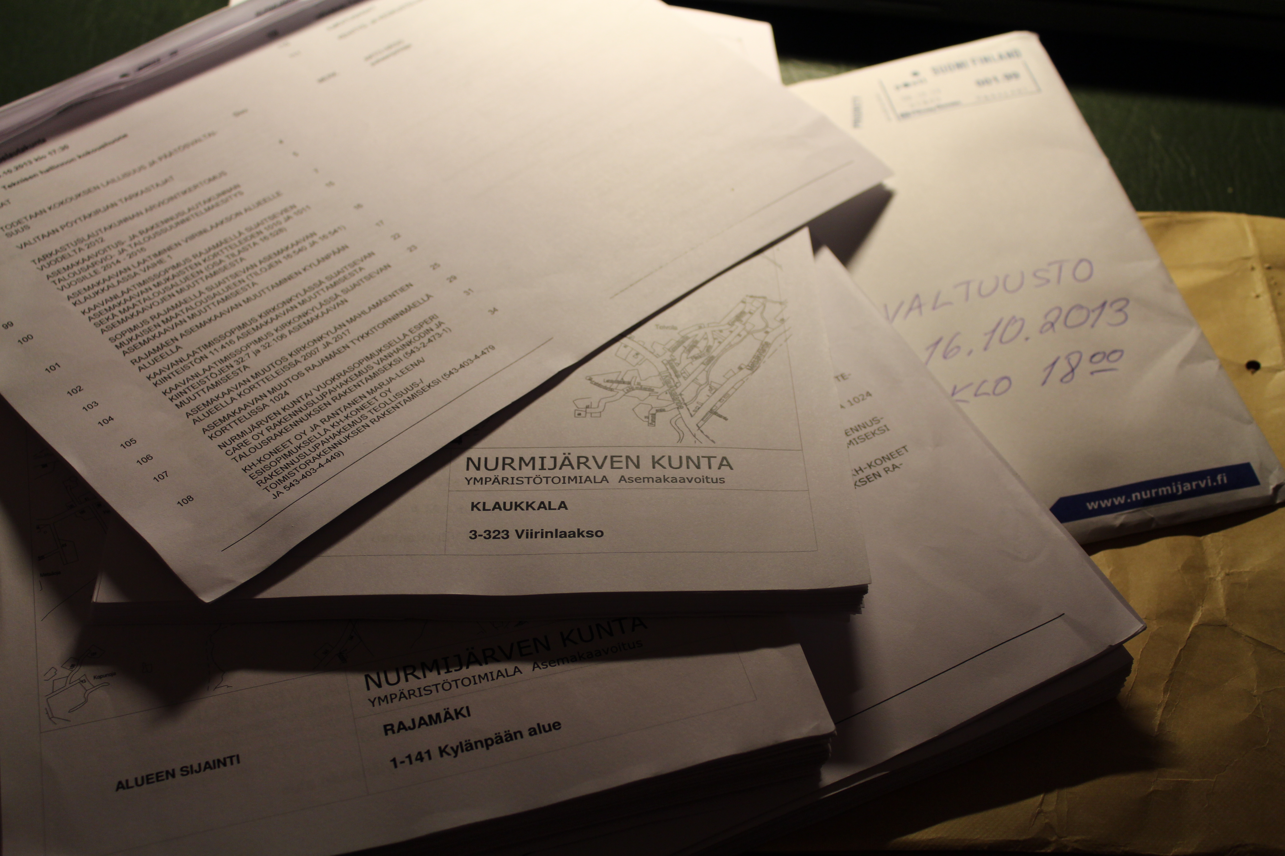 Kuriiri kiikutti viikonlopun ratoksi lisää kuntapostia eli asemakaavoitus- ja rakennuslautakunnan ensi tiistain kokousaineiston – arviolta 5-600 sivua paperia. Keskiviikon vajaan sadan sivun valtuustoaineisto on kevyttä kauraa lautakunnan lukupakettiin verrattuna.
