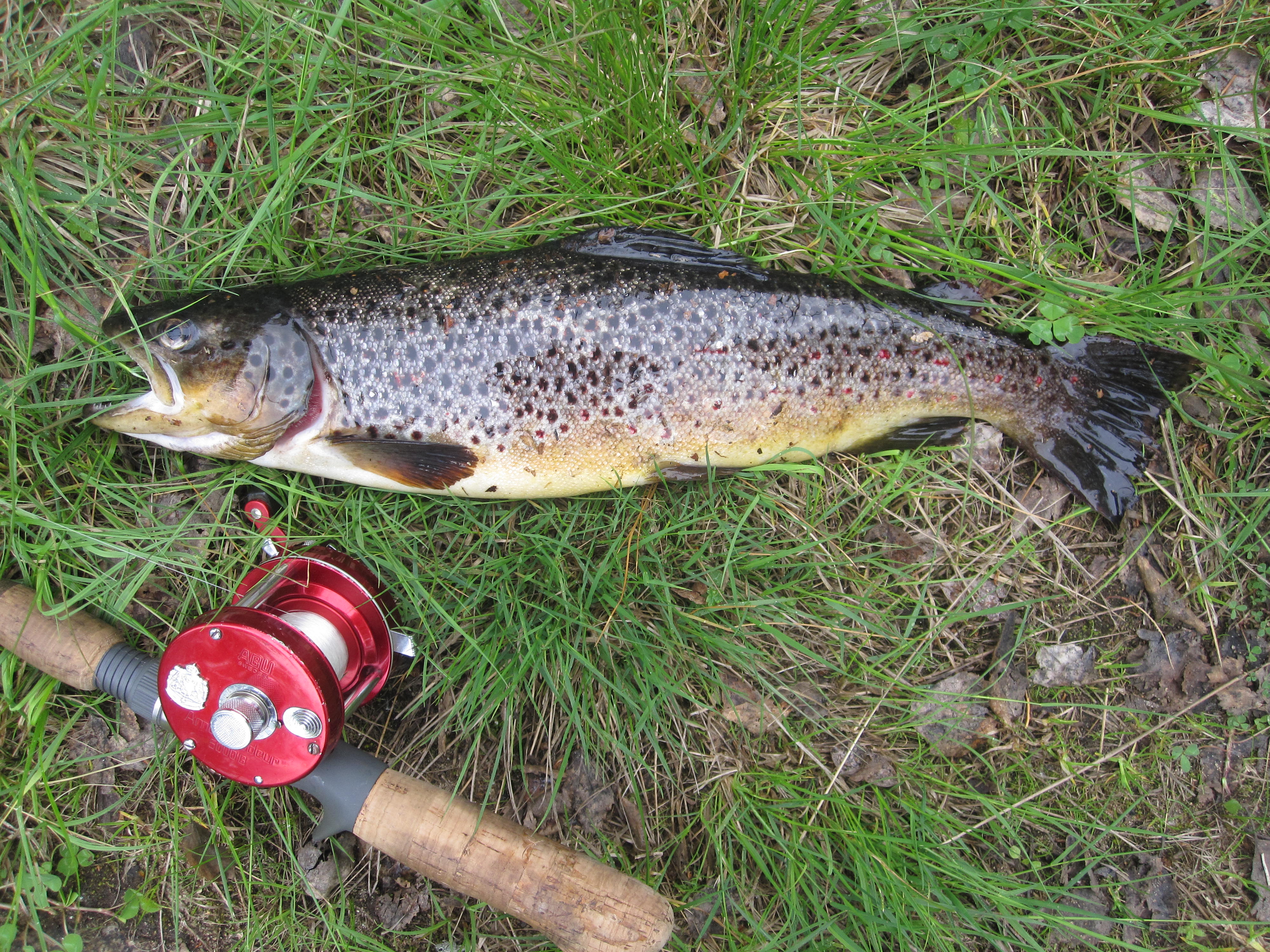 Alamittaista taimenta Pärjänjoelta – siis nykyrajoituksilla nuokin kalat olisivat olleet tuolloin alamittaisia. Kuvissa oleva kela on Abu Ambassadeur 5000B. Tuulikki-äidin Artolle 70-luvun alussa ostama. Maksoi kohtuullisen paljon, mutta on nyt 40 vuotta aktiivikäytössä ollut. Tuskinpa on tarvetta enää näillä kilometreillä toista hankkia.