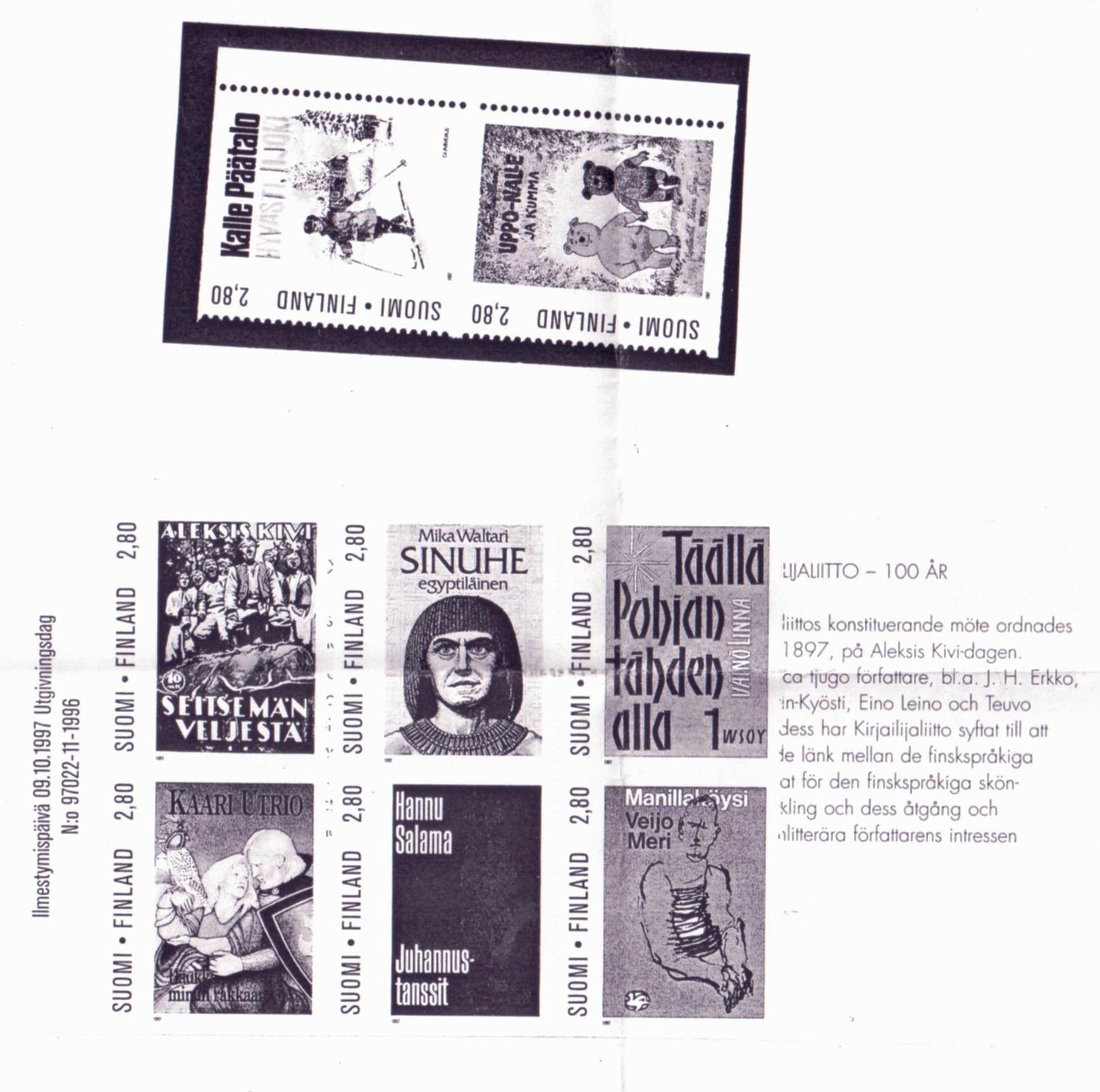 Syksyllä 1997 ilmestyi postimerkkivihko “Kirja 1900-luvulla”. Postimerkit julkaistiin Suomen Kirjailijaliiton 100-vuotisjuhlan kunniaksi ja siihen pääsi kirjankansineen Kivi, Waltari, Linna, Utrio, Salama, Meri, Elina Karjalainen Uppo-Nalleineen ja Päätalo.
