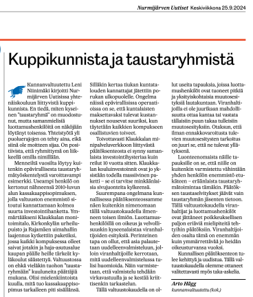 Tämän päivän Nurmijärven Uutisissa julkaistiin kirjoitukseni “Kuppikunnista ja taustaryhmistä”.
