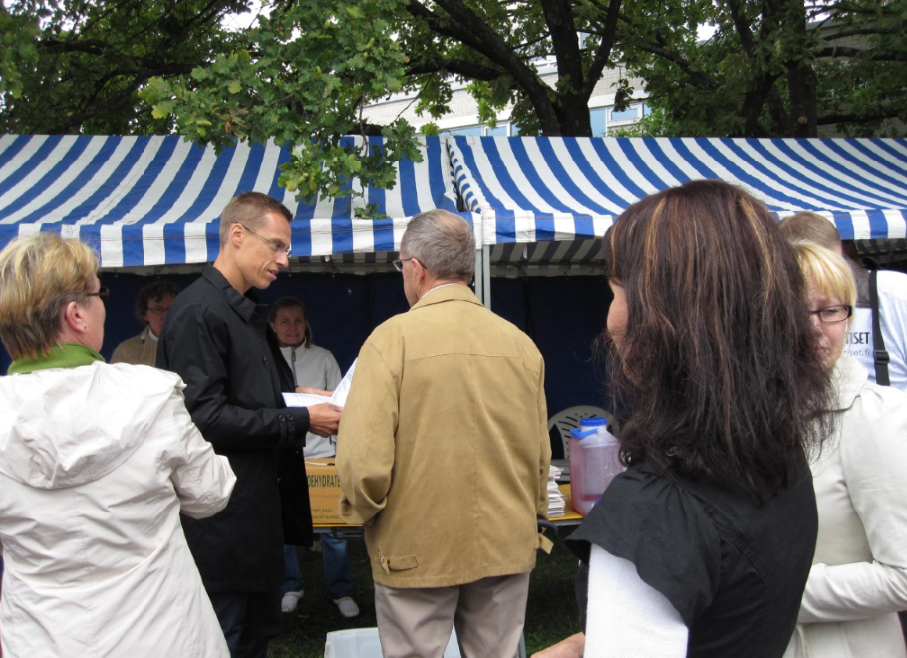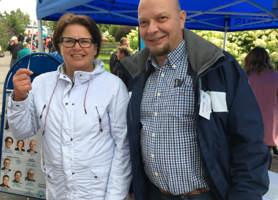 Vuonna 2017 kerättiin Sauli Niinistön kannattajakortteja. Mukana Kristiina Hakala.