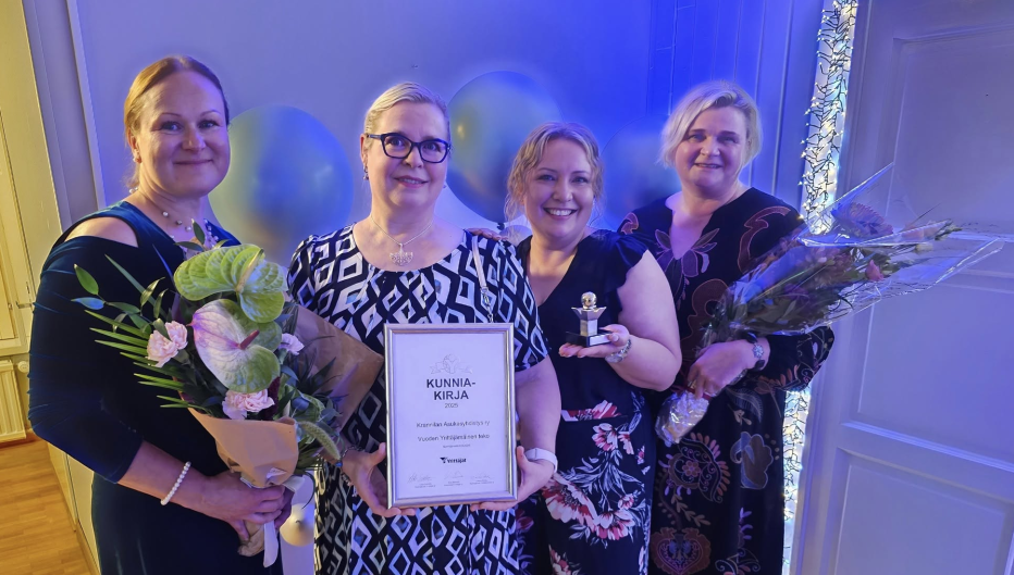 Nurmijärven Yrittäjät ja Klaukkalan Yrittäjät olivat valinneet vuoden 2025 Vuoden Yrittäjämäisen teon saajaksi Krannilan Asukasyhdistyksen, jonka puuhanaisista pääsin nappaamaan kuvan.