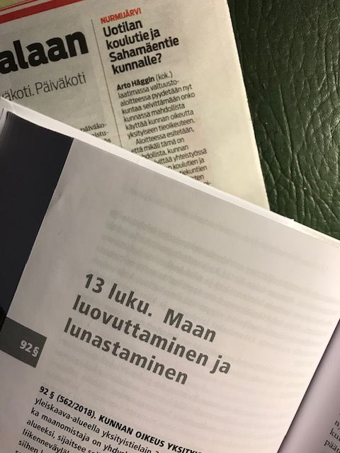 Tämä vastaus riitti minulle. Varmistuakseni, että tämä täysin uusi näkökohta ja lakiin perustuva mahdollisuus saataisiin perusteellisesti selvitettyä ja mahdollisesti hyödynnettyä muutamien yksityisteiden kohdalla jätin kunnanvaltuuston kokouksessa 27.1.2021 seuraavan valtuustoaloitteen: